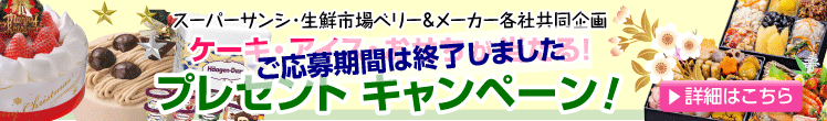 ・スーパーサンシ・生鮮市場ベリーのケーキ・アイス・おせちが当たるキャンペーンのご案内を掲載しました!!
